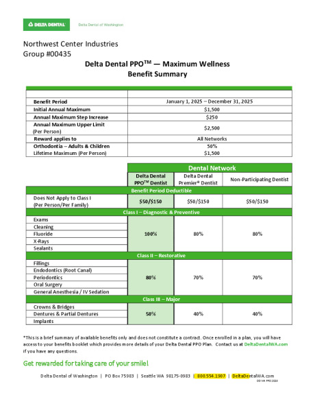 Northwest Center offers a comprehensive dental plan with Delta Dental of Washington.